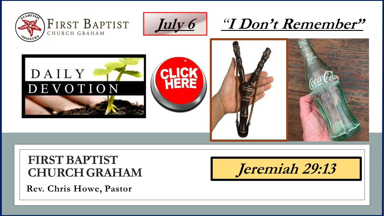 Devotion – July 6, 2022 Posted on July 6, 2022 by SteveHolt Author SteveHolt View all posts Share this: Share on X (Opens in new window) X Share on Facebook (Opens in new window) Facebook Related
